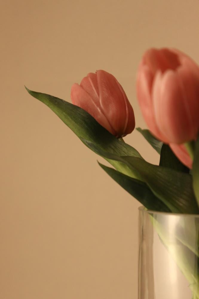 تنسيق يدوي لزهور توليب بملمس طبيعي، يزهر بثبات داخل فازة زجاجية نقية، وثُبّتت يدويا بمادة شفافة تُشبه الماء، كأنها لحظة جمال توقفت عن الزمن.